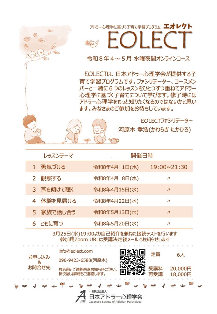 「エオレクト」令和8年4月〜5月水曜午前・夜間オンラインコース開催決定!
